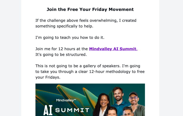 Ahh, he's proposing you use Fridays to learn AI, and then he proceeds to promote a summit. Got it.