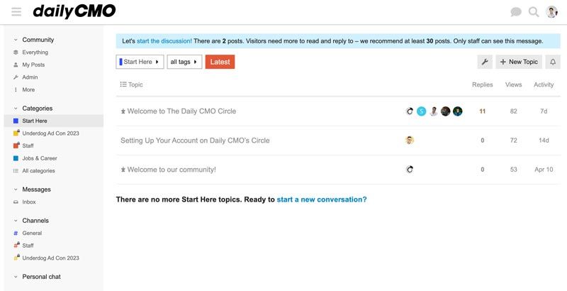 We intendedly built the Daily CMO community with Discourse – an open-source forum software. The platform runs on a desktop or mobile browser. You can join the community for free here.