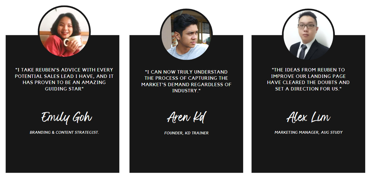 Ever since, I got obsessed with learning new marketing strategies and eventually began helping other companies with their marketing. Collectively, I've helped brands such as Honda Boon Siew, Q-dees, LEAD, and Nandos, generate over $30 million in revenue.