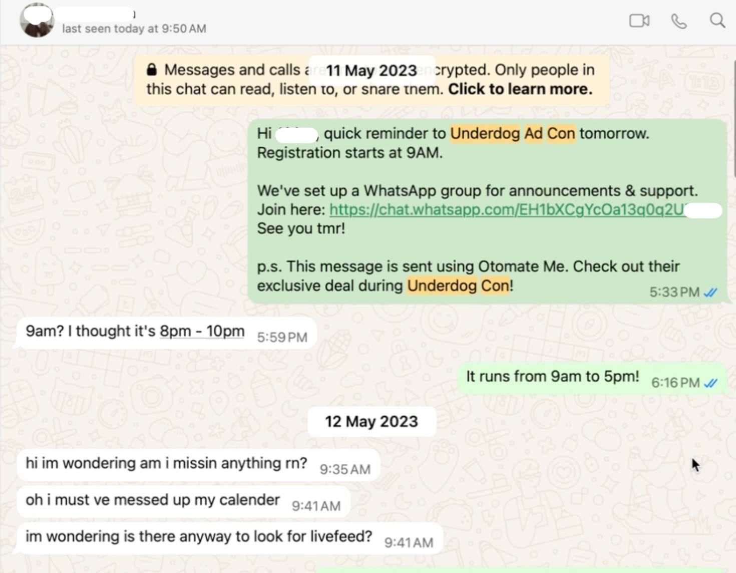 Even if someone does miss the event, they'll reply to our WhatsApp message. We find them a solution. And keep the conversation going.