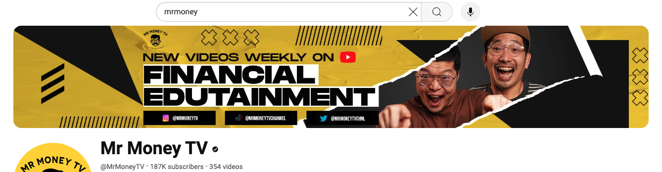 That's how media companies like MrMoney grew. Peter, the main persona at MrMoney constantly reminds everyone that they are an edutainment channel. Just look at his YouTube banner