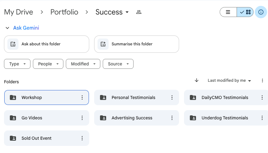 So whenever I feel defeated and as though I'm not putting enough value out, I browse my success folder, go through wins, and feel better in 5 minutes.