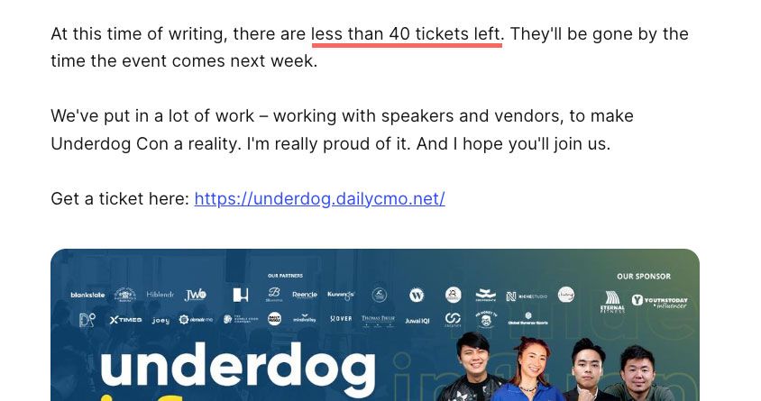 When we marketed that there were only 120 seats in Underdog Influence Con (it wasn't a lie, btw) we were using loss aversion.