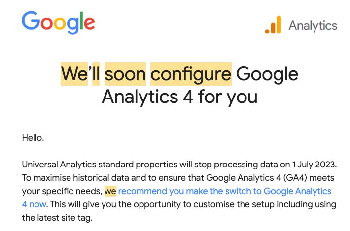 Totally understandable. If Google Analytics is confusing, GA4 takes it to a whole next level. That's why Google Analytics is now offering to auto-migrate your analytics to GA4.