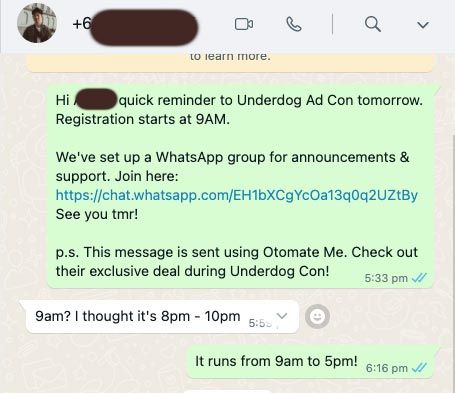 In the end, we used a tool, OtoWA to send every participant a personalized WhatsApp reminder message.