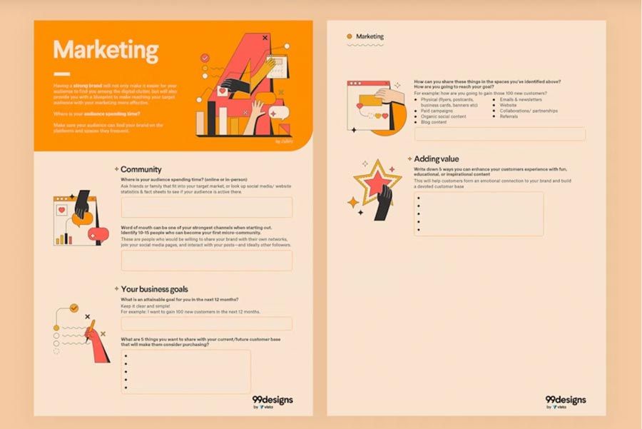 - Revisit your brand strategy – With a free template by 99designs.
