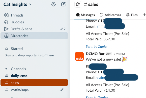 - People buy a ticket --> Get notified on Slack/Basecamp