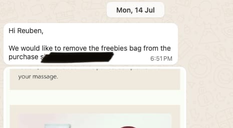 Everything else was the same – funnel, creatives, positioning, messaging, copy, ads. Just minus the "free gift", positioned as a gift that's worth RM450.
