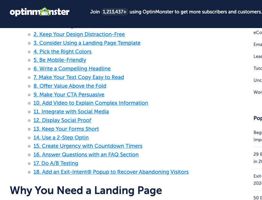 This morning I Googled "landing page tips" and clicked on one of the top results: