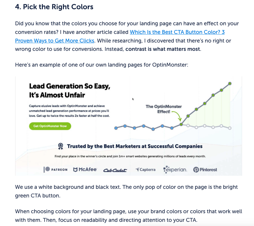 You can spend a whole week testing colors, turning your landing page purple, red, blue or use all the colors of the rainbow – and see no significant improvement in conversions.
