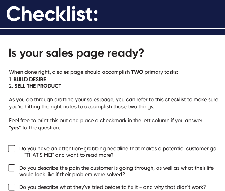 A sales page checklist that actually works